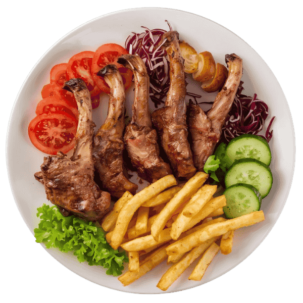 Groenten, frieten / rijst, 4 stukken lamskotelet
