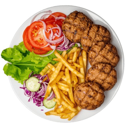Groenten, frieten / rijst, 4 stukken kőfte
