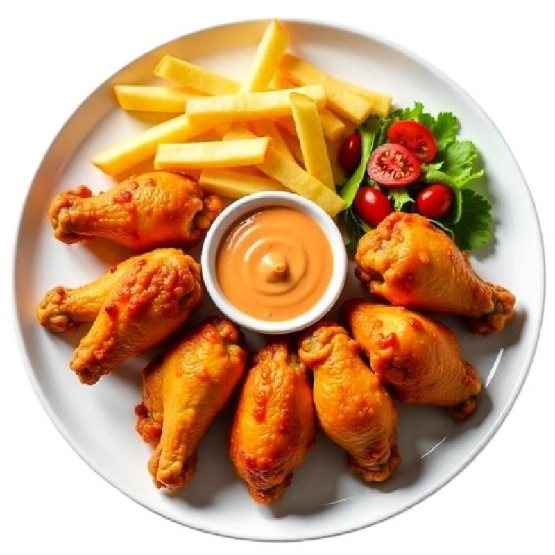 Groenten, frieten / rijst, 8 stukken kip vleugels
